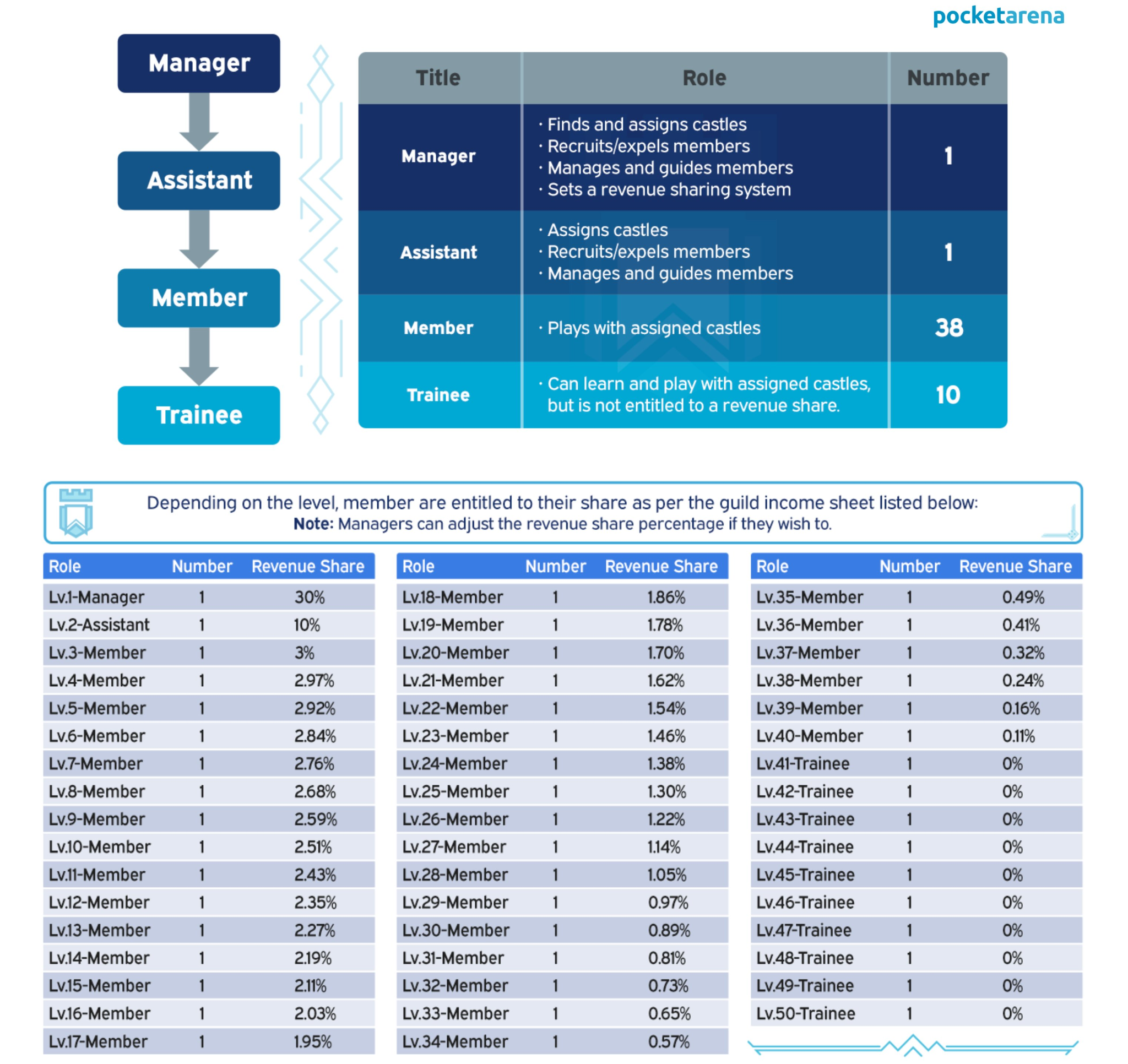 * Trainees have the same responsibilities as members but the difference is that they do not receive XP distributed from the Guild Pool.
